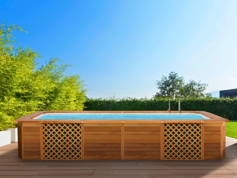 - NATURAL WOOD: Pro milovníky organické architektury a rustikálního stylu nabízíme celodřevěné provedení. Horní obrubu z přírodního exotického dřeva zde harmonicky doplňují masivní dřevěné obkladové panely po celém obvodu bazénu. Bazén tak dokonale splyne s okolní přírodou.