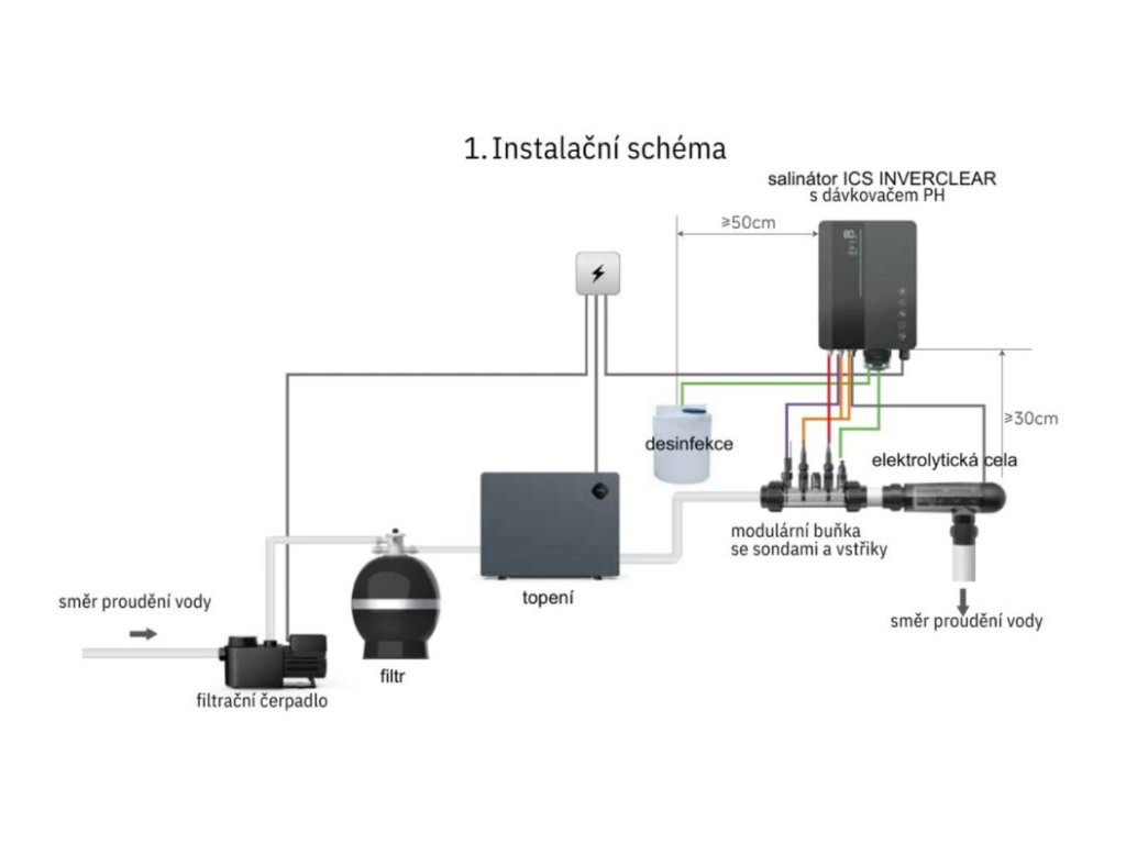 Solinátor s automatickým dávkováním pH ICS10 PREMIUM představuje moderní řešení pro úpravu bazénové vody pomocí solné elektrolýzy. Zařízení vyrábí chlór přímo z rozpuštěné bazénové soli, takže odpadá nutnost pravidelného dávkování klasických chlórových přípravků. Výsledkem je přirozeně čistá, jemná a hygienicky bezpečná voda, která je šetrnější k očím, pokožce i plavkám.