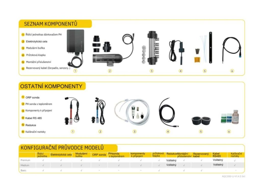 Oproti základním modelům je verze PREMIUM vybavena také ORP sondou, která nepřetržitě měří oxidačně-redukční potenciál vody (ORP). Tento údaj přímo souvisí s množstvím aktivního chlóru ve vodě. Na základě naměřených hodnot zařízení automaticky upravuje výkon solinátoru, takže je vždy vyráběno přesně takové množství dezinfekce, jaké je aktuálně potřeba.